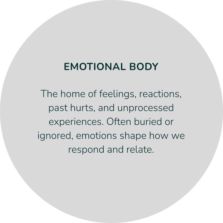 The home of feelings, reactions, past hurts, and unprocessed experiences. Often buried or ignored, emotions shape how we respond and relate.