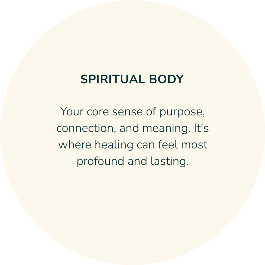 Your core sense of purpose, connection, and meaning. It’s where healing can feel most profound and lasting.